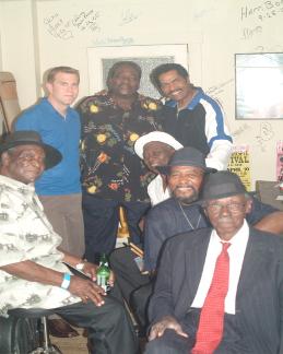 Photos (Above) from the filming of the PBS documentary "Native Sons" Top Photo Clockwise: "Big Jack" Johnson, Bobby Rush, Sam Carr, "Super Chikan", Pinetop Perkins, David "Honeyboy" Edwards, Little Frank Photos Courtesy : Dick Waterman |